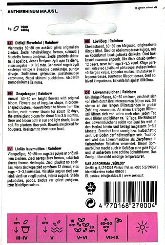Snapdragon Rainbow forms upright plants with sturdy stems and dense spikes of multicoloured blooms that attract bees and other friendly pollinators.