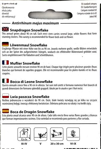 Antirrhinum Snowflake Seed.