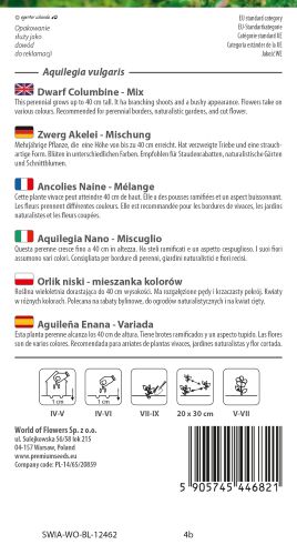 A compact and free-flowering perennial with delicate bonnet-shaped blooms in a soft mix of pink, blue, white, and violet. Dwarf Columbine Mix forms tidy clumps of ferny foliage topped with elegant nodding flowers from late spring to early summer. The blooms are highly attractive to bees and hoverflies and bring a romantic touch to borders, rockeries, and cottage-style planting schemes.