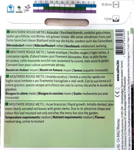 Moutarde Rouge Métis is a perfect addition to vegetable gardens, containers, and microgreen setups.