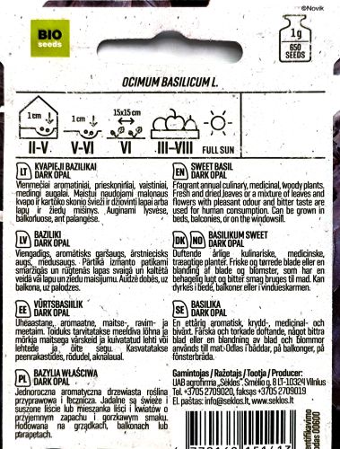 Sweet Basil Dark Opal is a beautifully selected variety that produces strong upright plants with glossy purple leaves and soft pink flowers. The foliage has a warm spicy aroma that adds depth to salads pasta dishes and summer cooking while also offering a dramatic visual contrast in mixed plantings.