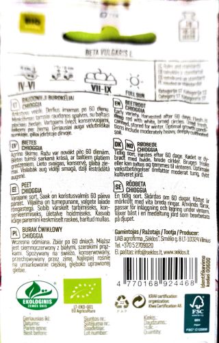 Certified Organic Seeds. Original sealed packet from Seklos. Certified under LT EKO 001 (Ekoagros).
