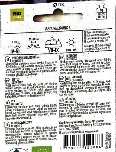 Certified Organic Seeds. Original sealed packet from Seklos. Certified under LT EKO 001 (Ekoagros).