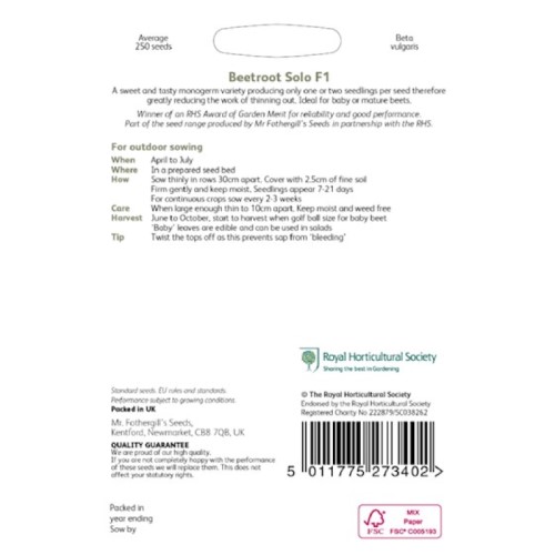 Beetroot Solo F1 RHS Seeds