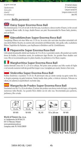 Daisy Super Enorma Rose Ball forms neat low growing clumps of spoon shaped green foliage topped with profuse flowering stems. The blooms appear from late winter through spring and are highly attractive to bees and early pollinators.