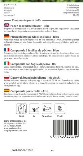 Peach-leaved Bellflowers prefer moist but well-drained soil and a sunny or lightly shaded position. Water regularly during dry spells and feed occasionally for best performance. Deadhead spent blooms to encourage further flowering. Once established, they are hardy and low-maintenance, returning reliably each year.