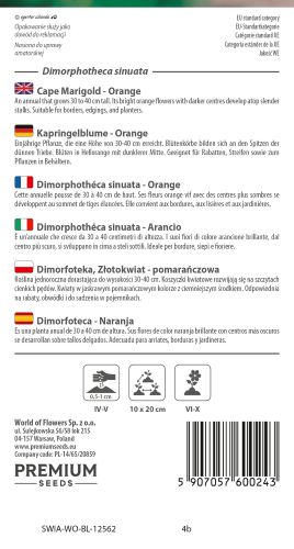 Water seedlings regularly until established, then reduce watering. Cape marigolds prefer dry conditions and full sun. Deadhead spent blooms to encourage continued flowering. In mild climates, they may self-seed and return the following year. Avoid overfeeding, as rich soils can reduce flowering.