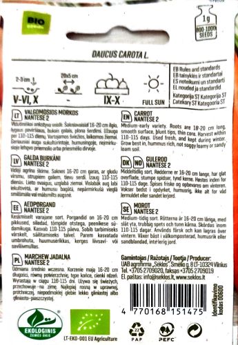 Certified Organic Seeds. Original sealed packet from Seklos. Certified under LT EKO 001 (Ekoagros).