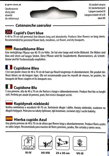 Recognised by the Royal Horticultural Society for its outstanding qualities, Catananche Cupids Dart is part of the RHS Seed Scheme, ensuring you receive high-quality seeds for guaranteed garden success.