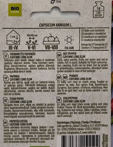 Certified Organic Seeds. Original sealed packet from Seklos. Certified under LT EKO 001 (Ekoagros).
