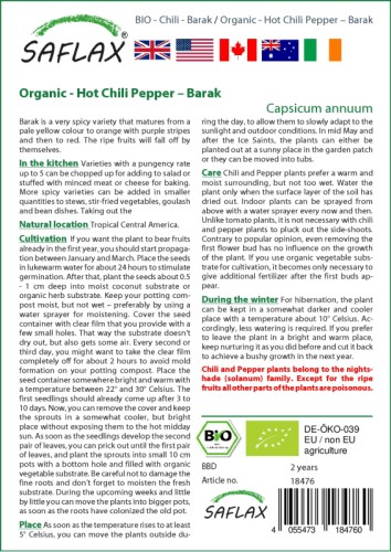 Chilli Pepper Barak ORGANIC Seeds - Irish Plants Direct