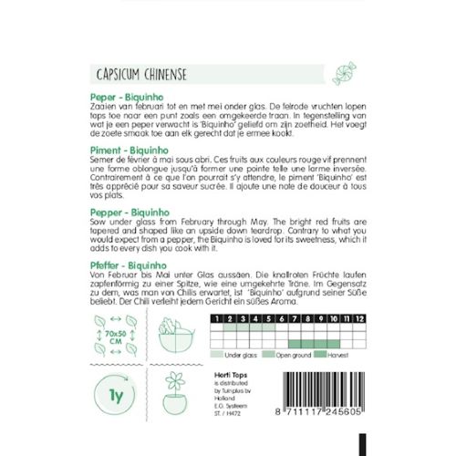 Chilli's can be grown outside in a sheltered sunny spot or in the tunnel or greenhouse in borders, large pots or grow bags.