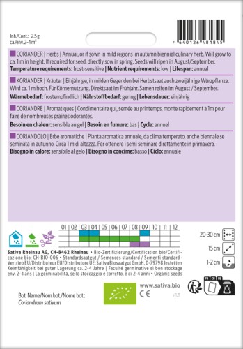Certified Organic Seeds. Original sealed packet from Sativa. Certified under CH-BIO-006(.bio.inspecta AG).