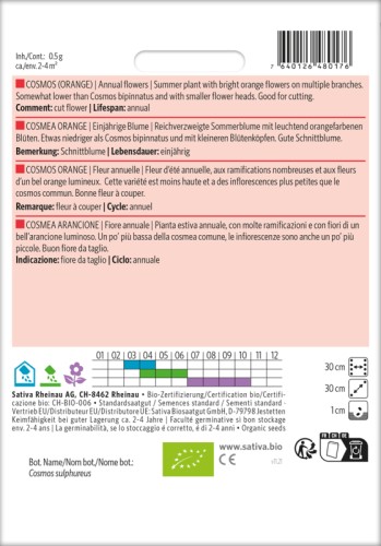 Certified Organic Seeds. Original sealed packet from Sativa. Certified under  CH-BIO-006(.bio.inspecta AG).