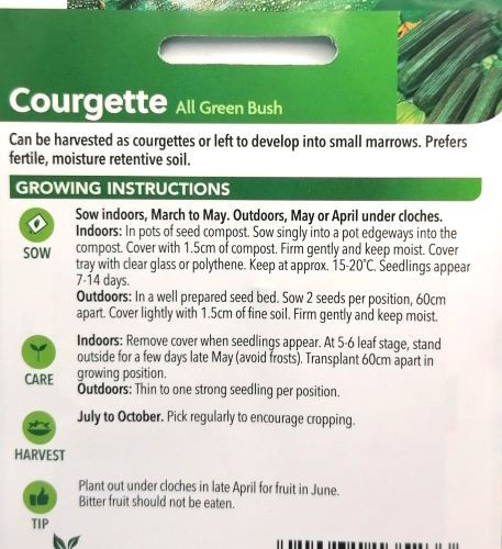 Courgette All Green Bush Seeds - Irish Plants Direct