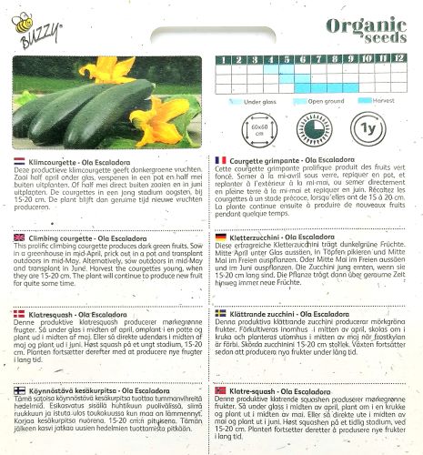 Certified Organic Seeds. Original sealed packet from Buzzy. Certified under NL BIO 01 (Skal Biocontrole).