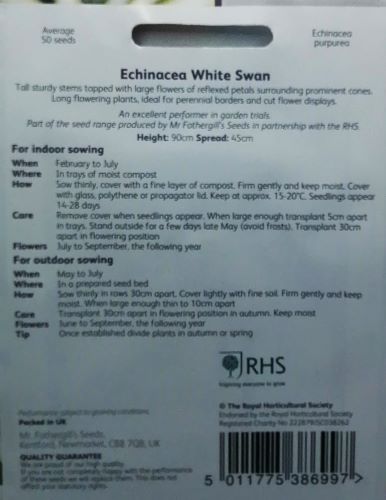 As part of the RHS Seed Scheme, Echinacea White Swan offers high-quality seeds with excellent germination and strong plant growth, ensuring reliable, healthy plants year after year.