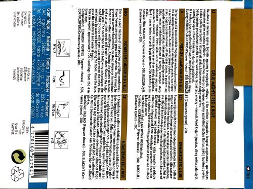 This vibrant Red & Blue Flower Seed Mixture combines the fiery brilliance of red poppies (Papaver rhoeas L.) with the rich, deep blue blooms of cornflowers (Centaurea cyanus L.). Together, they create a dazzling display of colour that brings a natural, meadow like charm to any garden space.