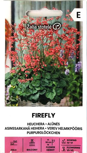‘Firefly’ Heuchera is not only valued for its ornamental beauty but also for its versatility in the garden. It thrives in partial to full shade, making it perfect for brightening up shadier areas where other plants may struggle.