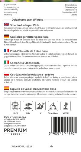 Siberian Larkspur Pink is a compact, bushy species that flowers abundantly from early summer, bringing elegance and gentle colour to borders, cottage gardens, and wildlife friendly schemes.