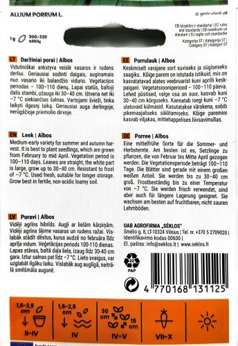 Leek Albos is an excellent early harvest leek variety that combines tenderness, uniformity, and mild flavour. Its elegant stems and versatility in the kitchen make it a must have for any gardener.
