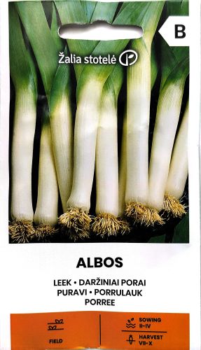 Leek Albos (Allium porrum L.) is an early maturing variety valued for its long, uniform white stems and refined, mild flavour.