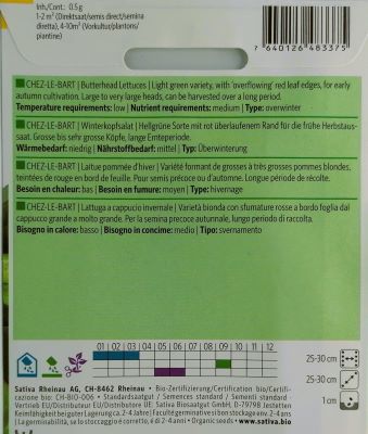 Certified Organic Seeds. Original sealed packet from Sativa. Certified under  CH-BIO-006(.bio.inspecta AG).