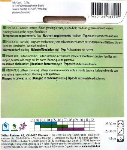 Certified Organic Seeds. Original sealed packet from Sativa. Certified under  CH-BIO-006(.bio.inspecta AG).