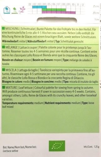 The pack contains Lollo Rosso, reined de glades and other loose leaf varieties.