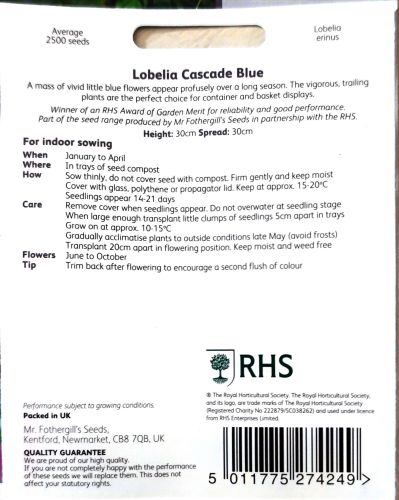 Lobelia Cascade Blue RHS Seeds - Irish Plants Direct