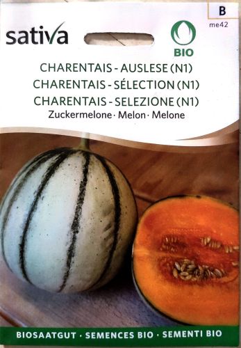 Melon ‘Selene’ Charentais (Cucumis melo var. cantalupensis) is a premium French heirloom variety prized for its intensely sweet, fragrant orange flesh and smooth, pale green to golden skin with light ribbing.