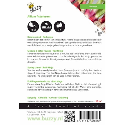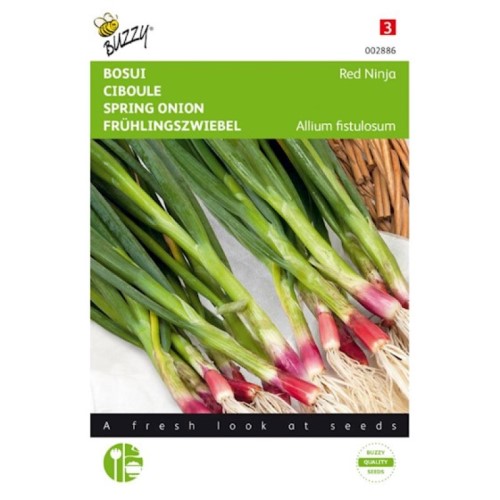 Perfect for culinary use in salads, stir-fries, soups, and Asian dishes. Onion Spring Red Ninja produces mild, tender stems with a distinctive red blush. Highly suitable for home gardens, allotments, and continuous harvest systems.