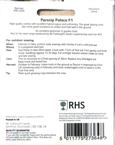 Parsnip Palace F1 RHS Seeds – Irish Plants Direct