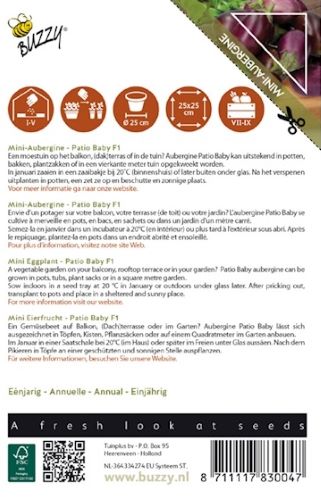 Patio Veg Mini Aubergine Patio Baby F1 Seeds - Irish Plants Direct
