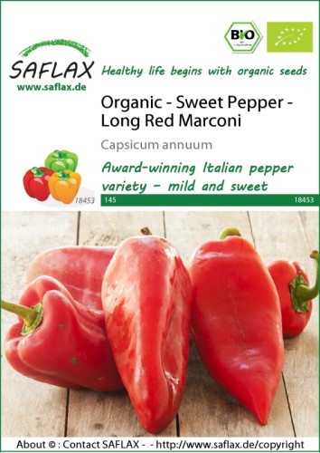 Pepper Sweet Long Red Marconi ORGANIC Seeds