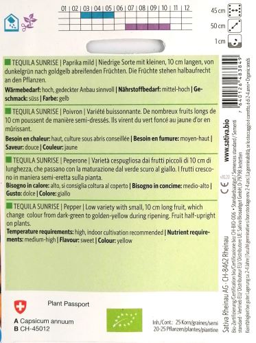 Certified Organic Seeds. Original sealed packet from Sativa. Certified under  CH-BIO-006(.bio.inspecta AG).