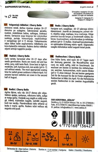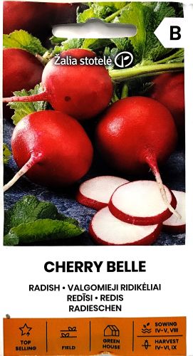Radish Cherry Belle (Raphanus sativus L.) is a classic, early maturing radish variety valued for its bright red, round roots and crisp, tender white flesh. Its mild, peppery flavour makes it perfect for fresh salads, garnishes, and snacking straight from the garden.