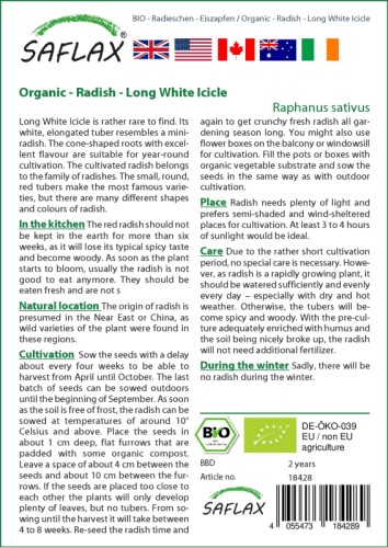 Radish Long White Icicle ORGANIC Seeds - Irish Plants Direct