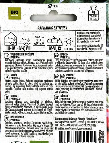 Certified Organic Seeds. Original sealed packet from Seklos. Certified under LT EKO 001 (Ekoagros).