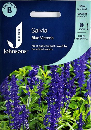 Salvia farinacea ‘Blue Victoria’ forms compact, upright plants with aromatic foliage and striking blue flower spikes that bloom continuously through summer. Highly attractive to bees, butterflies, and other pollinators, this variety adds bold colour and vertical interest to borders, beds, and containers.