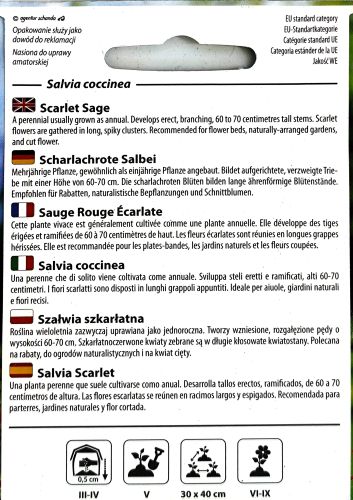 Water regularly during dry spells and feed lightly with a balanced fertiliser to encourage abundant blooms. Deadhead spent flowers to prolong the display and maintain tidy growth. Scarlet Sage thrives in sunny positions and is excellent for bedding, borders, and decorative summer displays.