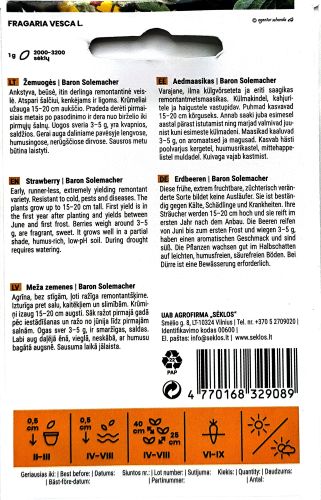 Wild Strawberry Baron Solemacher (Fragaria vesca L.) is a charming perennial variety renowned for its sweet, aromatic berries and delicate flavour.
