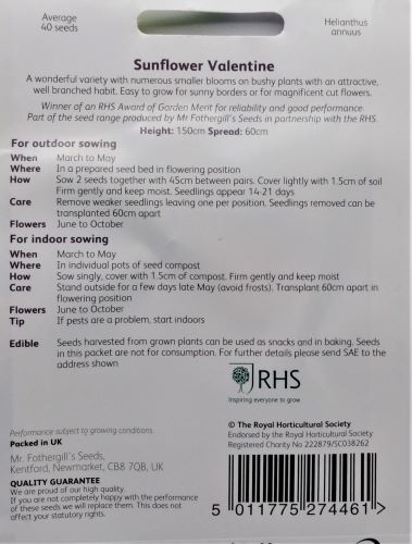 Sunflower Valentine RHS Seeds