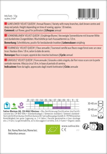 Sunflower Velvet Queen ORGANIC Seed - Irish Plants Direct