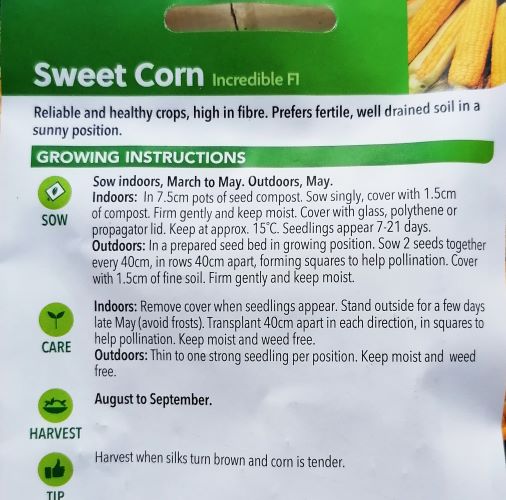 Sweet Corn Incredible F1 Seeds - Irish Plants Direct