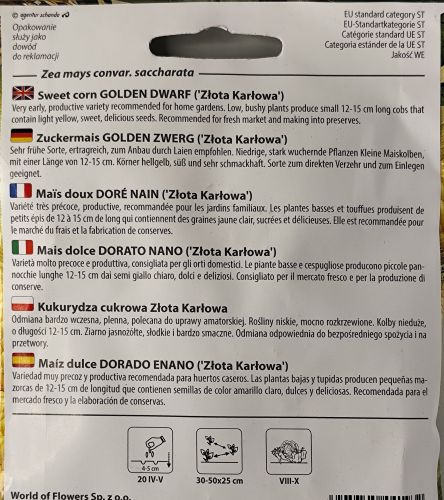 Sweet Corn Zlota Karlowa Seed - Irish Plants Direct