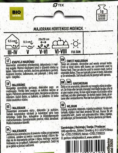 This compact, bushy plant thrives in well-drained, fertile soil and enjoys a warm, sunny location. Reaching a height of 30 – 50 cm, it produces small clusters of white or pale pink flowers in summer, attracting bees and other beneficial pollinators. Well-suited for container growing, raised beds, and herb gardens, marjoram is both an ornamental and functional addition to any outdoor space.