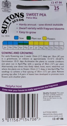 Sweet Pea Patio Mix Seeds - Irish Plants Direct