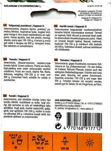 Hapynet F1 thrives in fertile, well-drained soil and full sun. Its hybrid vigour ensures strong growth, uniform fruiting, and excellent resistance to common tomato diseases, making it a dependable choice for both novice and experienced gardeners.