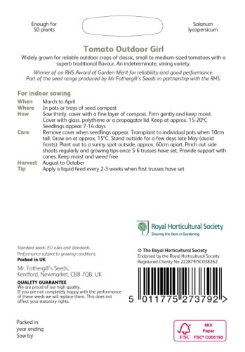 Tomato Outdoor Girl RHS Seeds